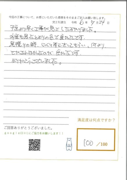 何軒も数年にわたり、リフォームを検討してきましたが見積りとプラント担当者の方の対応に、踏み切れずにいました。