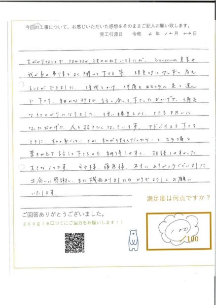 “残したい所・改善したい所”を丁寧に組み込み、理想の暮らしに近づけられたとのこと、スタッフ一同大きな喜びを感じております。