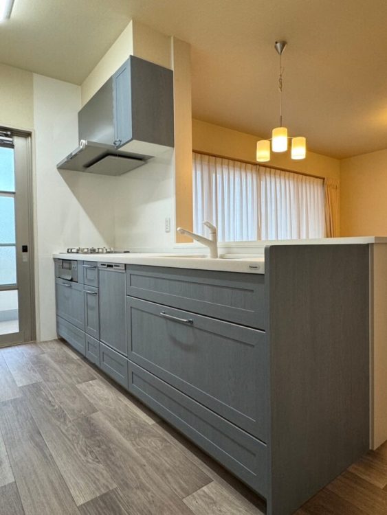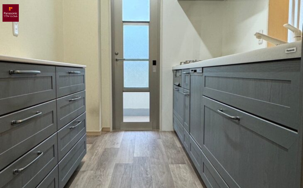 ブルーグレーオーク柄の框組みされた扉がクラシカルでステキ♪