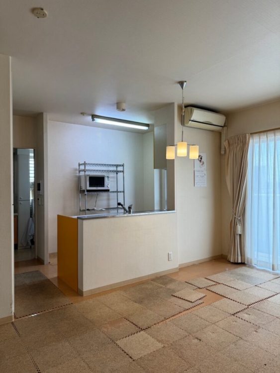 こちらのお宅にはかわいいワンちゃんが一緒に住まわれており、ワンちゃんが滑らないようフローリングの上にコルクマットを敷いておられました。