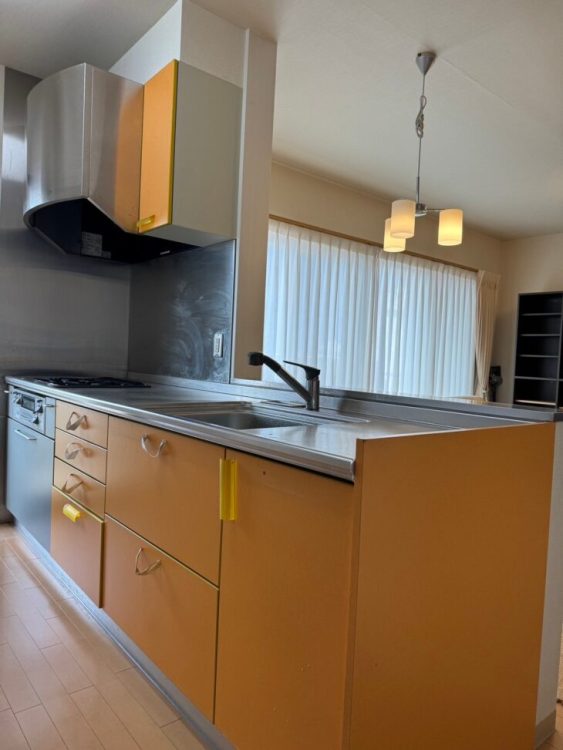対面式の壁付I型キッチン。まずは旧キッチンを撤去。キッチンパネルやカウンター等リニューアルする為、同時に撤去していきます!