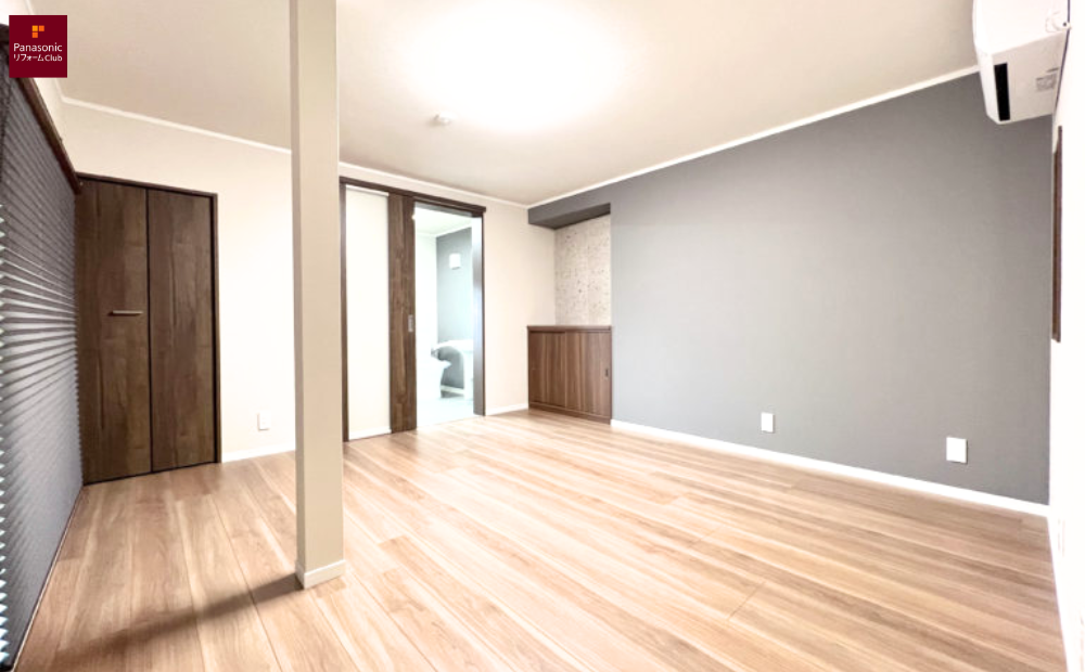 ・和室と広縁一部を取り込んで寝室として使っていただく洋室に改修。寝室のすぐ横にサニタリールームを新設。