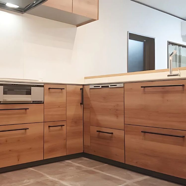 木目の扉と黒の取手でクラシックな雰囲気に仕上げました。