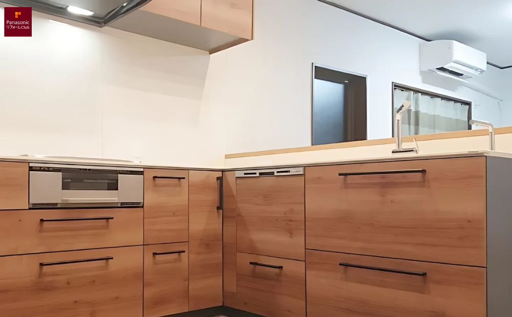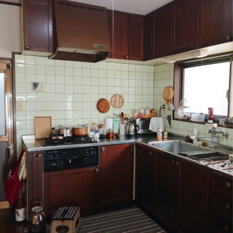 キッチンリフォーム 家族時間を大切にした、クラシックな対面キッチン 壁付けのL型キッチンから対面式に変更し、家族と会話がしやすいレイアウトに。 木目の扉と黒の取手でクラシックな雰囲気に仕上げました。 造作壁を設けて、水ハネからお子様のプリント類もしっかりガード! 【 施工事例データ 】 □ 住 所 :岡山県 岡山市 東区 □施工箇所:キッチン、リビング □施工内容:キッチン交換工事、解体工事、廃材処理費、大工工事、設備工事、電気工事、内装工事、諸経費 キッチン(TOTOザ・クラッソ) □ 費 用 :1,165,620円 AFTER BEFORE