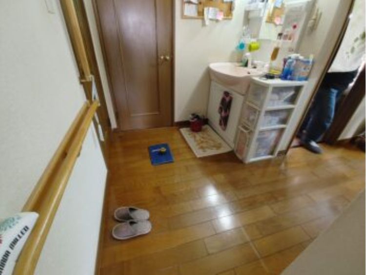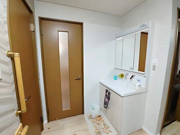 洗面台横にはキッチンパネルを設置。水はねもこれで安心です♪